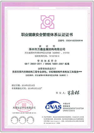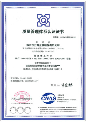 涿州市萬鑫金屬結構有限公司是集圖紙轉化、生產、制作、安裝各類鋼結構、各種彩色壓型板、彩板及復合夾芯板于一體的專業(yè)生產企業(yè),經濟技術實力雄厚,發(fā)展意識超前,具有先進的安裝技術和實踐經驗。